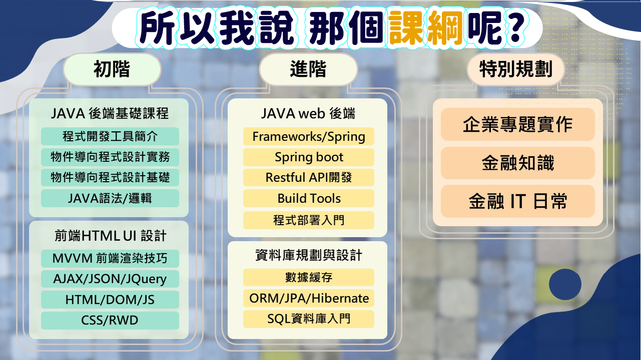 1. 重點課程- JAVA 程式課-奠定基礎,強化現在企業常用技術